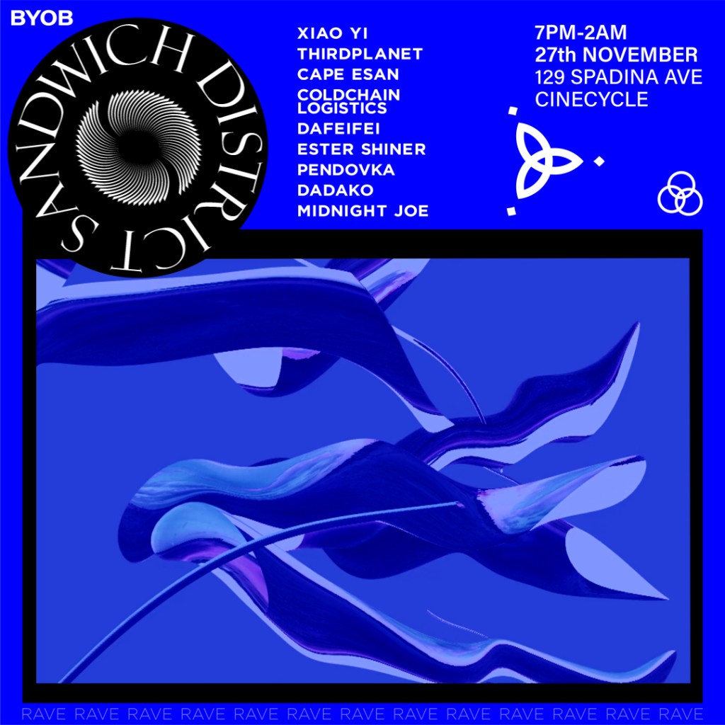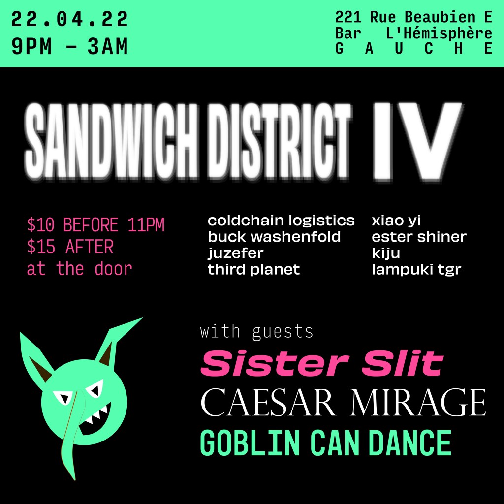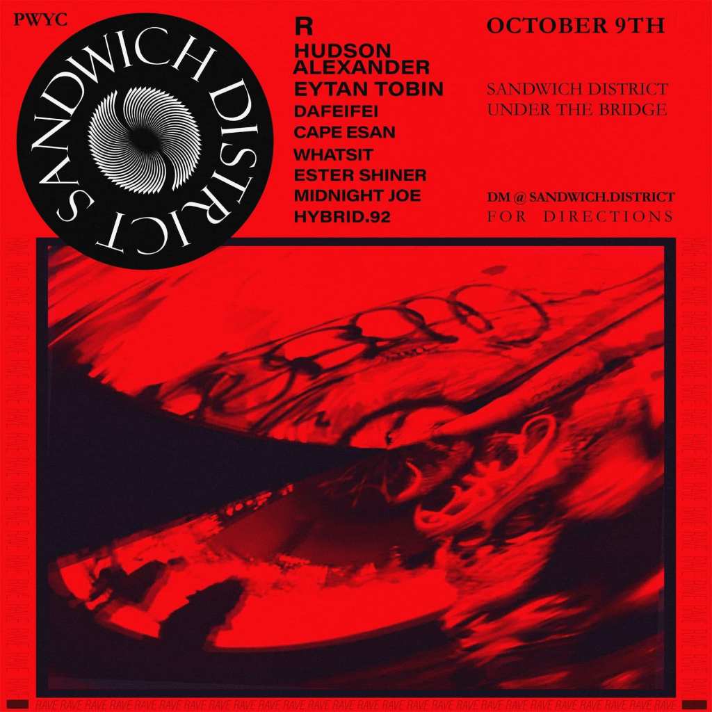 From 2019 to 2022 I was part of an underground music collective based in Toronto and Montreal, Canada. We were inspired by Sandwell District, one of two of the British Murder Boys, in the hard techno scene. The play on words brought forth a creative union between friends and music lovers. We created tracks, set up underground concerts and shows and raves, and produced collaborative multidisciplinary projects. During my time with them, I began DJing under the pseudonym Lampuki TGR, and I produced quite a few of their poster graphics, event posters, and brand identity that was used in all of their productions and merch.